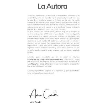 Cada uno de los patrones ha sido detalladamente diseñado para ofrecer una experiencia de tejido placentera y sin complicaciones. He trabajado para que las instrucciones sean claras y precisas, incluyendo gráficos y descripciones que acompañan cada paso del proceso. Los tejedores podrán seguir cada patrón con facilidad, evitando errores y logrando un resultado final profesional.