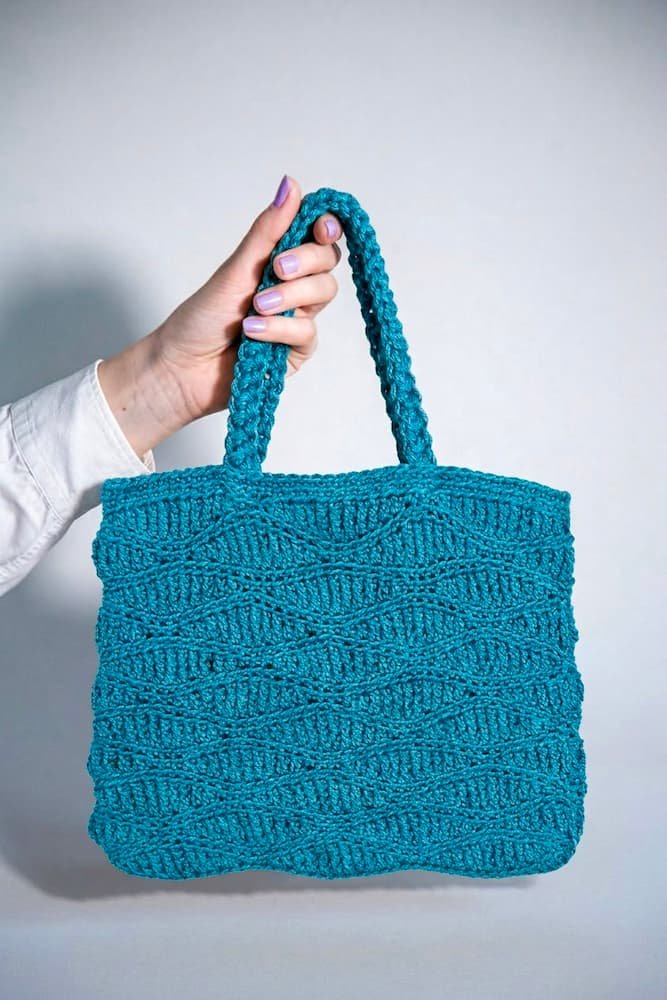 El Bolso Olas del Mar es una invitación a disfrutar del proceso. Es el proyecto perfecto para quienes buscan un accesorio con personalidad propia. Gracias a la técnica de puntos en relieve, verás cómo emerge un gráfico lleno de vida y profundidad vuelta tras vuelta.