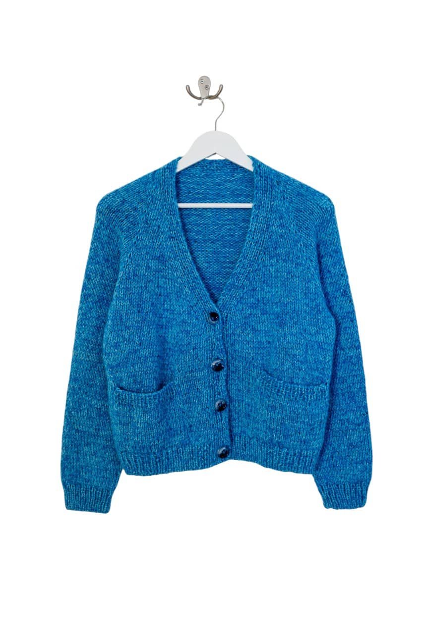 El Cárdigan Vintage es un top down real, tejido de arriba hacia abajo, sin costuras. Está pensado para agujas de 5 mm y disponible en varias tallas para que puedas elegir el ajuste que prefieras.