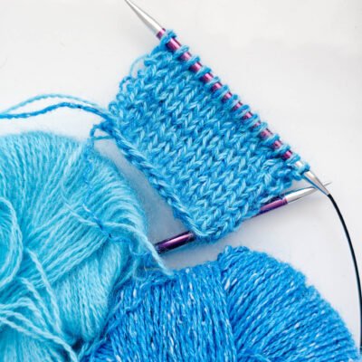 El cuerpo se trabaja con agujas de 6mm y los elásticos con agujas de 5 ó 5,5mm.