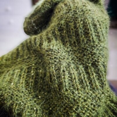 A lo largo del proceso, el chal va creciendo de forma progresiva, permitiendo adaptar fácilmente el tamaño final según la cantidad de hilo o la longitud deseada.