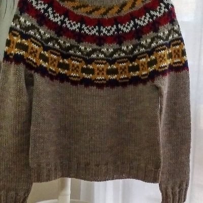 Patrón y las instrucciones descargables en PDF, describen paso a paso la confección del suéter Alaska Fair Sweater.