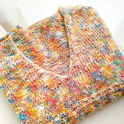 Seguimos pensando que el verano es perfecto también para tejer y esta es otra de nuestras propuestas. Esta es una «camiseta» Top Down. que bien puede ser tejida también de abajo arriba ;-) No tiene costuras, no hay que coser nada.