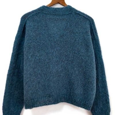 Las instrucciones incluyen 4 tallas diferentes, S, M, L y XL. Y he utilizado punto jersey derecho y punto elástico 1×1 para hacer la prenda.