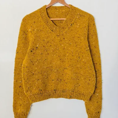 El Jersey Hito es un diseño top-down sin costuras, comenzando desde el escote y tejiéndose en circular para un acabado limpio y sin ensamblajes. Su escote en pico y la estructura bien planificada lo convierten en una prenda favorecedora y fácil de adaptar.