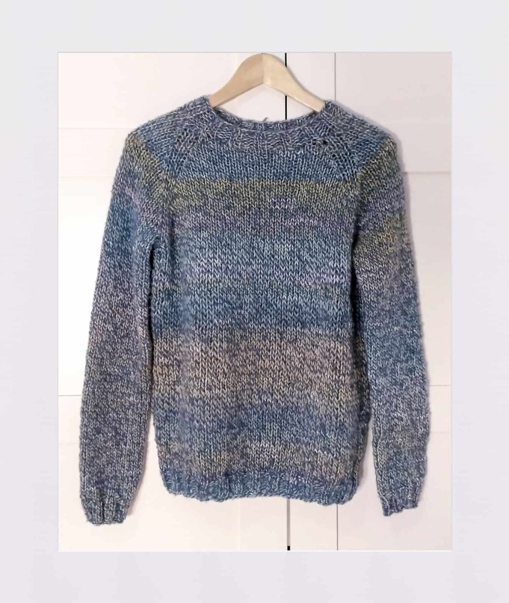Patrón Súeter Express, este es un patrón de suéter tipo ranglán de lana. Para tejer bottom up, es decir que se comienza por la parte de abajo y se termina por la parte de arriba. Realmente es un jersey sin costuras.