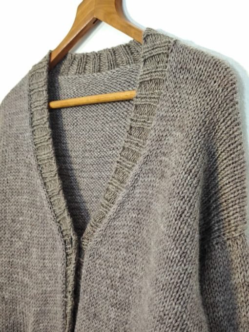 El Cárdigan Contur se teje de arriba hacia abajo, sin costuras, y combina punto jersey con detalles en canalé que estilizan la prenda. Es cómodo, estiloso y perfecto para practicar técnicas clave de construcción.